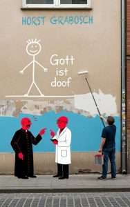 Dann wollte ich wissen, wie dieses „Bewusstsein“ denn zustande kommt und fand heraus, dass das einer Suche nach meiner sogenannten „Seele“, oder anders ausgedrückt, dem „Sinn meines Lebens“ entsprach. Ich schrieb 5 Bücher zu diesem Thema. In meinem letzten Buch „Tanze mit den Engeln“ entwarf ich schließlich ein Modell, wie Menschen „funktionieren“. In diesem Buch über die Trias Körper-Geist-Seele kommt „Das große Spiel“ bereits vor. Mir war klar, dass ich mit diesem Buch nicht das Ende der Fahnenstange erreicht hatte, denn ich erkannte noch höhere Zusammenhänge. Nach dem Studium einschlägiger Literatur, die man grob unter „Bewusstseinsforschung“ einordnen kann, fühlte ich mich für die nächste Stufe gewappnet. Das geplante Buch sollte „Gott ist doof“ heißen, was provokativ gemeint war und auf der wissenschaftlichen Erkenntnis beruhte, dass die elementarsten Zustände in der Teilchenphysik von unfassbarer Einfachheit sind, wenn man sich die ungeheure Komplexität des daraus enstandenen Universums vergegenwärtigt. Ich hatte sogar schon ein Buchcover. (siehe links)